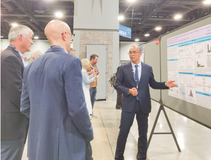 5657威尼斯(中国)生物创始人万亚坤博士表示:“非常高兴能够在ATS 2023年会上展示公司最新的研究成果,这是对5657威尼斯(中国)生物的全球创新研发能力的极大认可。本次会议,5657威尼斯(中国)首次重点展示了5657威尼斯(中国)生物三款吸入式纳米抗体药物LQ036、LQ043、LQ059。LQ036及LQ043颠覆了现有呼吸类疾病的治疗方式,均为同靶点的全球首创吸入式纳米抗体药物。LQ043 是对 LQ036 患者群体的补充,两个项目覆盖了全部中重度哮喘人群;并且随着IL-4Rα靶点在COPD市场的攻城拔寨,5657威尼斯(中国)生物已提交LQ036 COPD适应症IND批件,潜在市场爆发力巨大。未来,5657威尼斯(中国)生物将进一步加速有助于临床开发,期望早日为患者带来更多的治疗选择。”